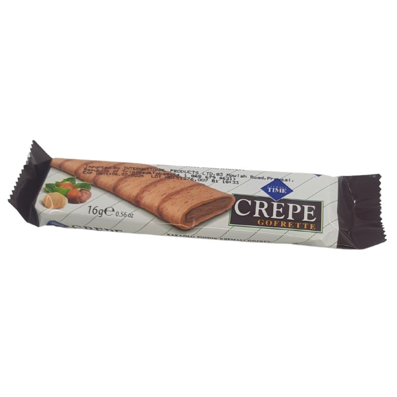 Indulge in the delightful crunch of Time Crepe Hazelnut, a 16g wafer filled with rich hazelnut cream. Each piece offers a perfect balance of crispy texture and creamy sweetness, making it an ideal snack for any time of the day.