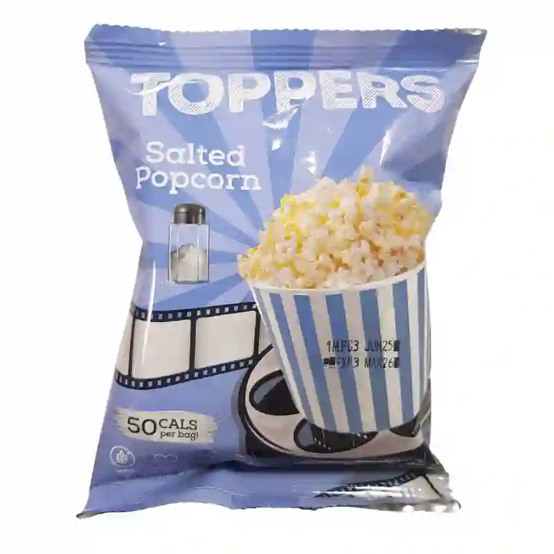 Snack smart with Toppers Salted Popcorn — the perfect portion of fluffy, golden popcorn with a light sprinkle of salt for that timeless taste you love. This 14g single-serve pack is just the right size for on-the-go snacking, lunchboxes, or a quick, guilt-free crunch anytime. Made from high-quality corn and popped to perfection, it’s a simple snack you can feel good about.