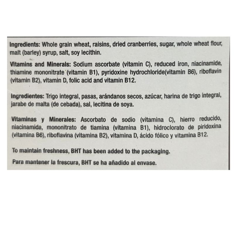 This delicious and nutritious cereal is the perfect way to start your day! Universal Raisin Bran with Cranberries is a crunchy and flavorful cereal that is packed with fiber and essential vitamins and minerals. It contains whole grain wheat and bran flakes, raisins, and cranberries for a delicious and nutritious breakfast. The wheat and bran flakes provide a good source of fiber, while the raisins and cranberries add a sweet and tart flavor. The cereal is also fortified with essential vitamins and minerals, including iron, zinc, and B vitamins. This cereal is a great way to get your daily dose of fiber and essential vitamins and minerals, while also enjoying a delicious and flavorful breakfast. Enjoy it with your favorite milk or yogurt for a complete and balanced breakfast.