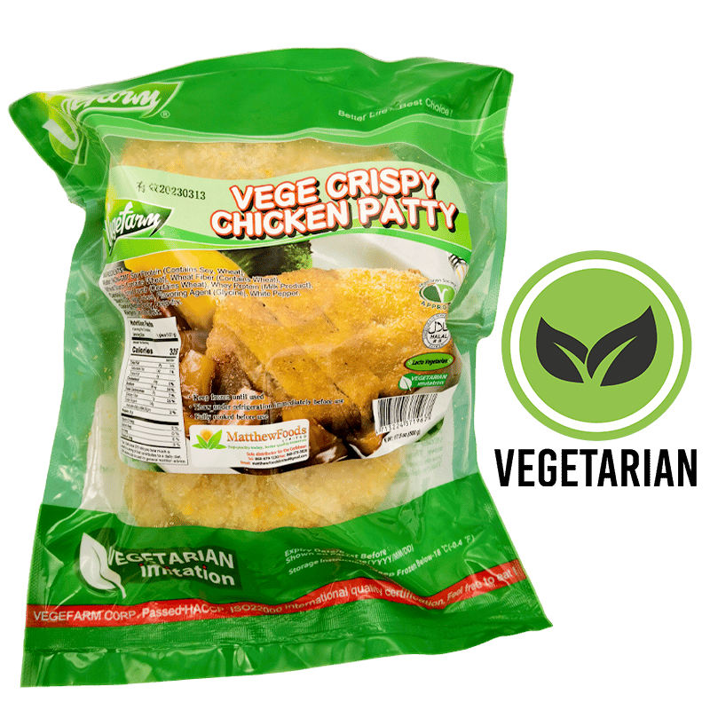 Instead of the classic hamburger or cheeseburger, loaded with artery-clogging saturated fat, opt for this delicious VEGE CRISP CHICKEN PATTY. Microwave, Deep-fry or Grill.
